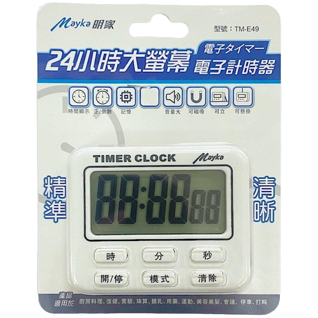 Mayka明家附時鐘電子式正倒數計時器TM-E49